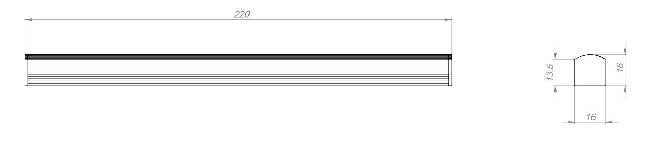 The LPP-220 lamp has a rectangular aluminum case made of a special profile. From the front side of the profile frosted protective polycarbonate glass is installed. An indication module with white LEDs is inserted into the housing. Plugs are inserted into the profile from the sides. At the back, the lamp has brackets with holes for attaching the lamp to the required surface