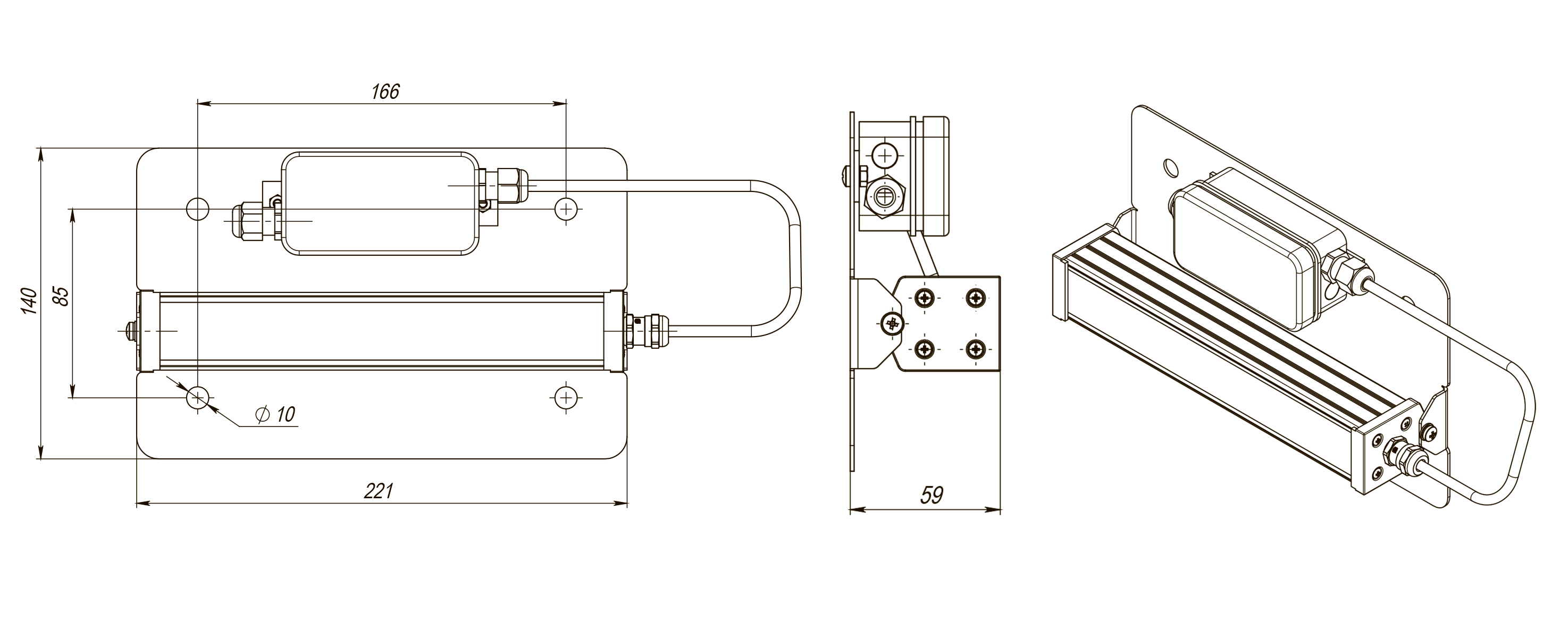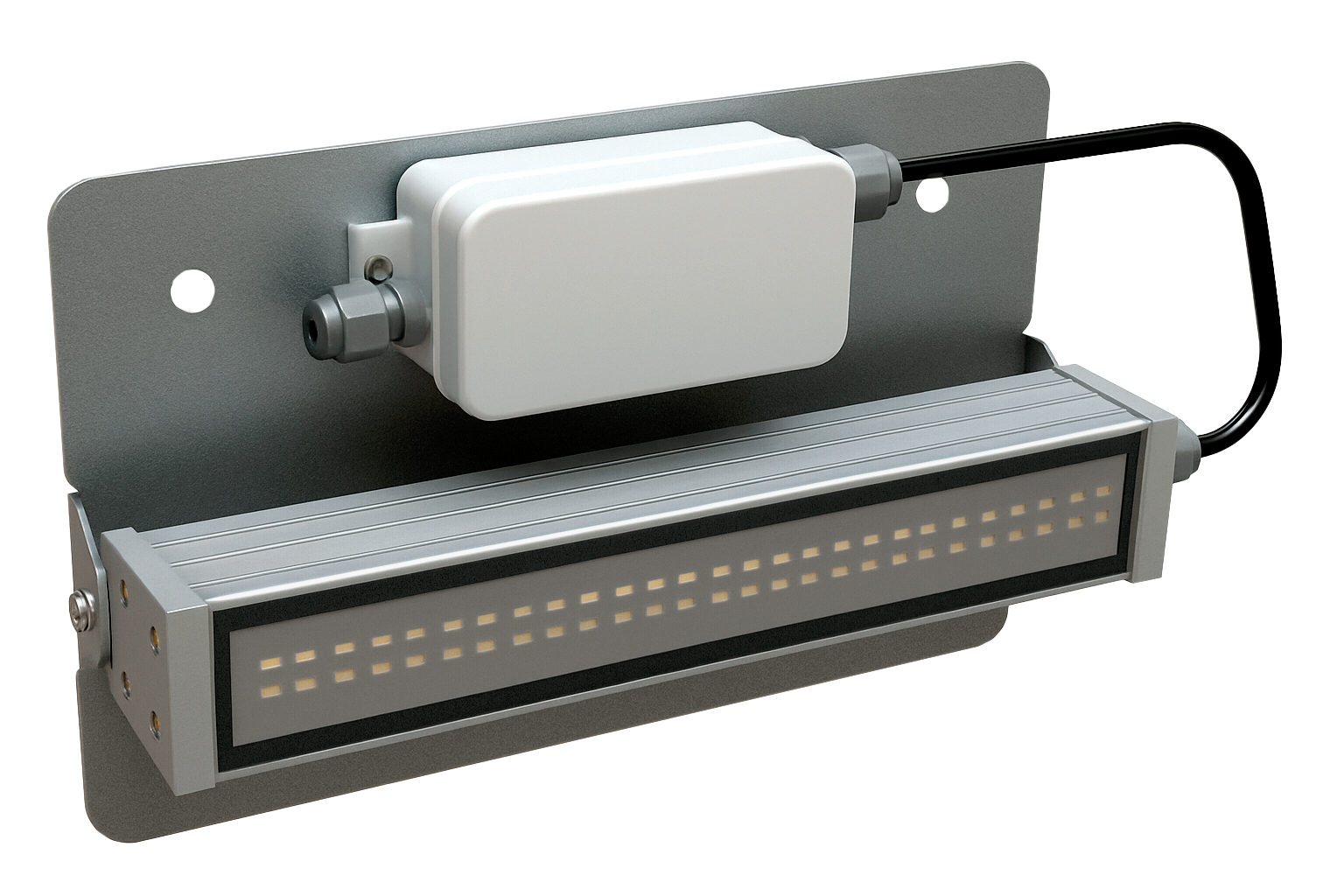 The lamp has a rectangular aluminum housing made from a special profile. On the front side of the profile, there is protective frosted glass, hermetically glued to the housing