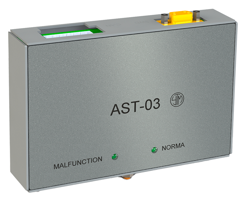 The AST-03 units measure temperature at control points using analog sensors DT-B and DT-M (Pt1000 type) while diagnosing the sensor status. Information about the temperature at control points and the sensor status is transmitted from the CAN 2.0 information buses to the PITC-3 unit of its section of the locomotive