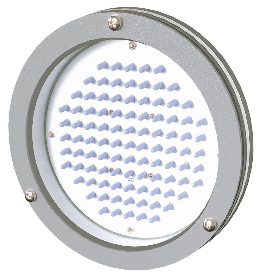The lantern has a cylindrical steel body. The body is painted with gray powder paint. An indication module with white light-emitting diodes is inserted into the case