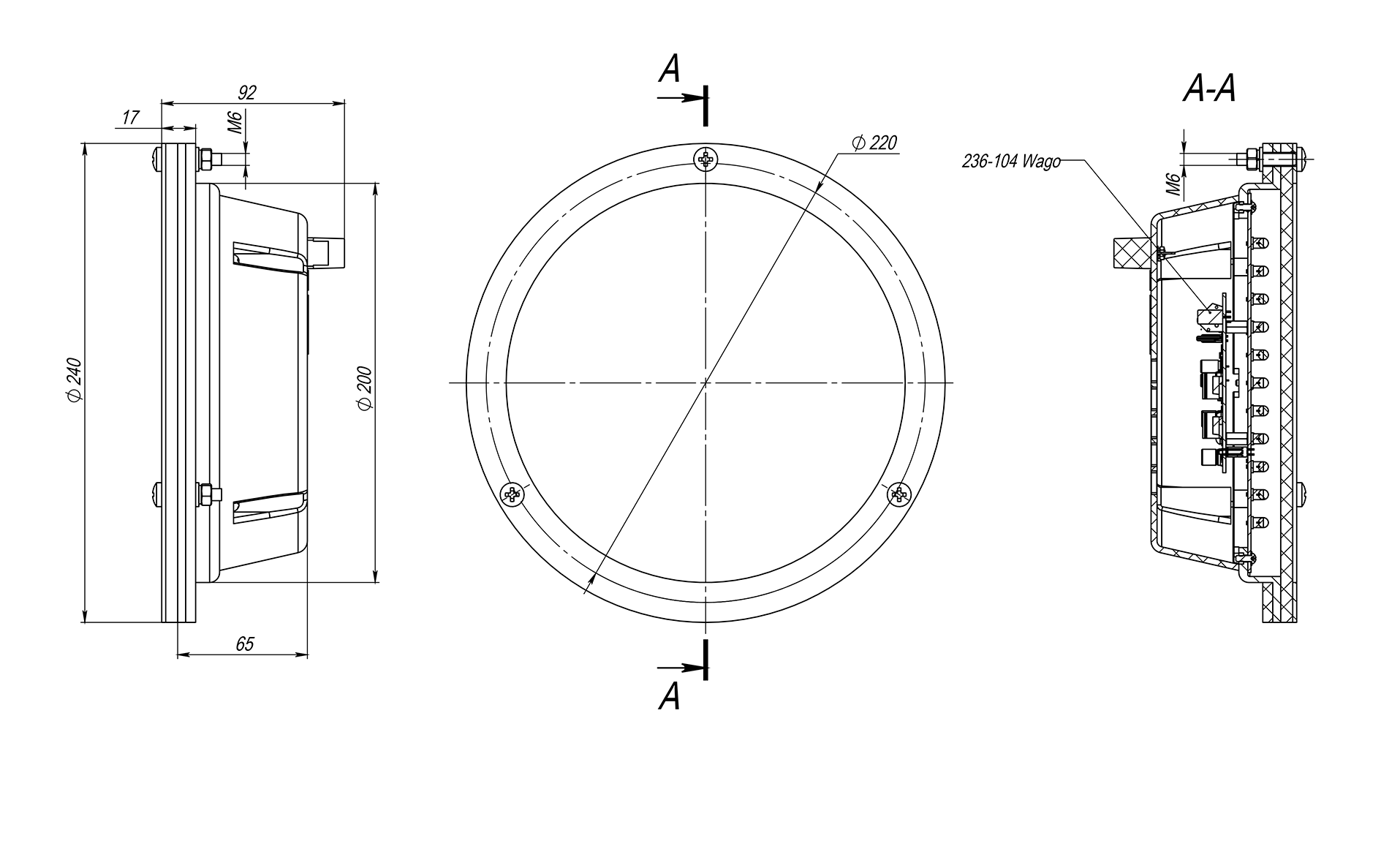A power converter is installed behind the display module. On the rear wall of the lamp, screw terminals are installed: 3-pin for connecting to the electrical circuit of the locomotive, 2-pin for connecting to the red buffer lamp LR-120/16. There is a screw for grounding the structure on the back wall